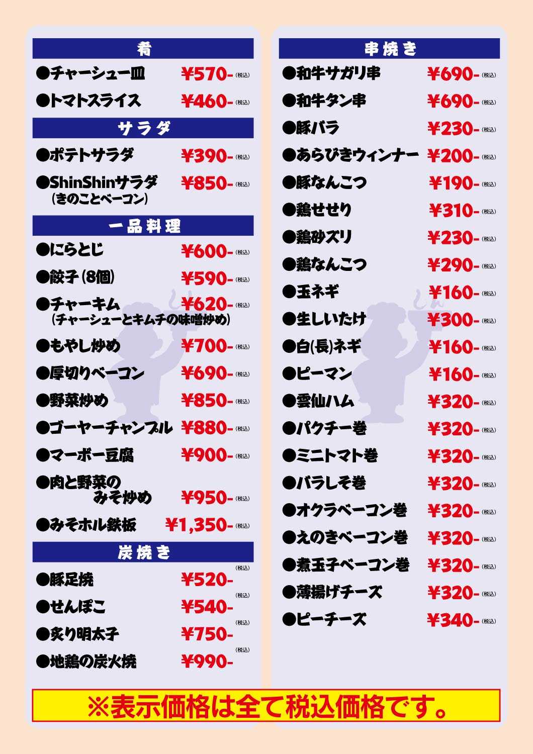 【天神本店・古門戸町店メニュー】居酒屋台〜いざかやたい!〜